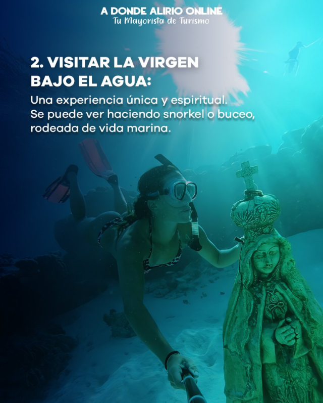Para quienes buscan una conexión más profunda, la experiencia de visitar la **Virgen bajo el agua** es sencillamente transformadora. Esta estatua sumergida ofrece un momento único y espiritual que puedes vivir haciendo snorkel o buceo. Es un santuario silente rodeado de vibrante vida marina que te recordará la majestuosidad de la naturaleza.