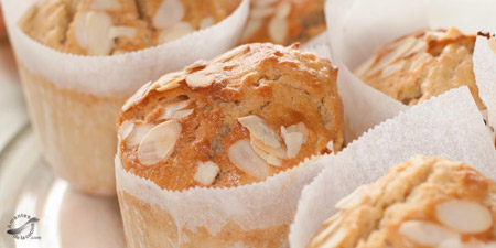 Vierte la mezcla en los moldes y decora encima con almendras fileteadas.